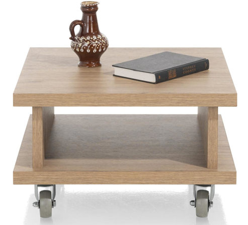 Dank der praktischen Rollen ist der Delmonte mobil und flexibel einsetzbar – ideal als Beistelltisch neben dem Sofa oder als freistehendes Element. Unter der stilvollen Tischplatte befindet sich ein offenes Fach, das zusätzlichen Stauraum bietet. Die Konstruktion aus Primo Laminato (HPL) in der Farbe Eiche Natur ist leicht, robust und pflegeleicht. Dieses Material sieht aus wie Holz, ist jedoch kratzfest und perfekt für den täglichen Gebrauch.