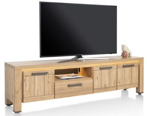 Das Lowboard Delmonte von Henders & Hazel ist ein stilvolles und funktionales Möbelstück der rustikalen Delmonte-Kollektion. Die charakteristische Lamellenstruktur der Türen verleiht ihm eine ansprechende Massivität. Hergestellt aus Primo Laminato (HPL), sieht es aus wie Holz, ist aber leicht, langlebig und pflegeleicht sowie kratzresistent – ideal für den modernen Lebensstil. Es ist in drei Breiten (140 cm, 170 cm und 200 cm) erhältlich, wobei die Anzahl der Türen je nach Modell variiert. Ein integriertes Kabelmanagement sorgt für Ordnung, während die dimmbare LED-Beleuchtung mit Touch-Dimmer für eine angenehme Atmosphäre sorgt. Das Soft-Close-System für Türen und Schubladen garantiert ein sanftes Schließen und erhöht die Lebensdauer des Möbelstücks.