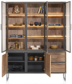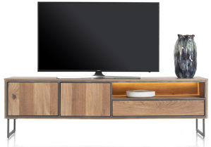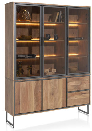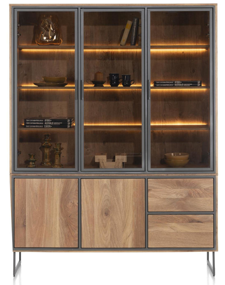 Der Trapani Buffetschrank von Henders & Hazel vereint Industrial-Charme mit edlem Mangoholz. Das handgebürstete Furnier zeigt eine lebendige Struktur und verleiht dem Möbelstück eine einzigartige Ausstrahlung. Kontrastierende Metallbeine und -rahmen harmonieren perfekt mit dem warmen Holz. Eine integrierte LED-Beleuchtung setzt Ihre Lieblingsstücke stilvoll in Szene und schafft eine gemütliche Atmosphäre. Der Schrank ist in zwei Größen (120 cm und 160 cm) erhältlich und passt sich flexibel an Ihre Bedürfnisse und Raumgestaltung an.