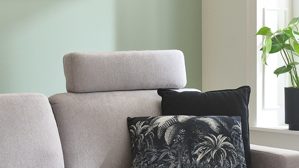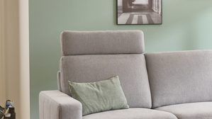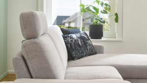 die Kopfstütze wird in die Kopfstützvorrichtung an der Rückenlehne des Sofas eingesteckt und lässt sich dann in der Höhe und in der Neigung manuell verstellen
