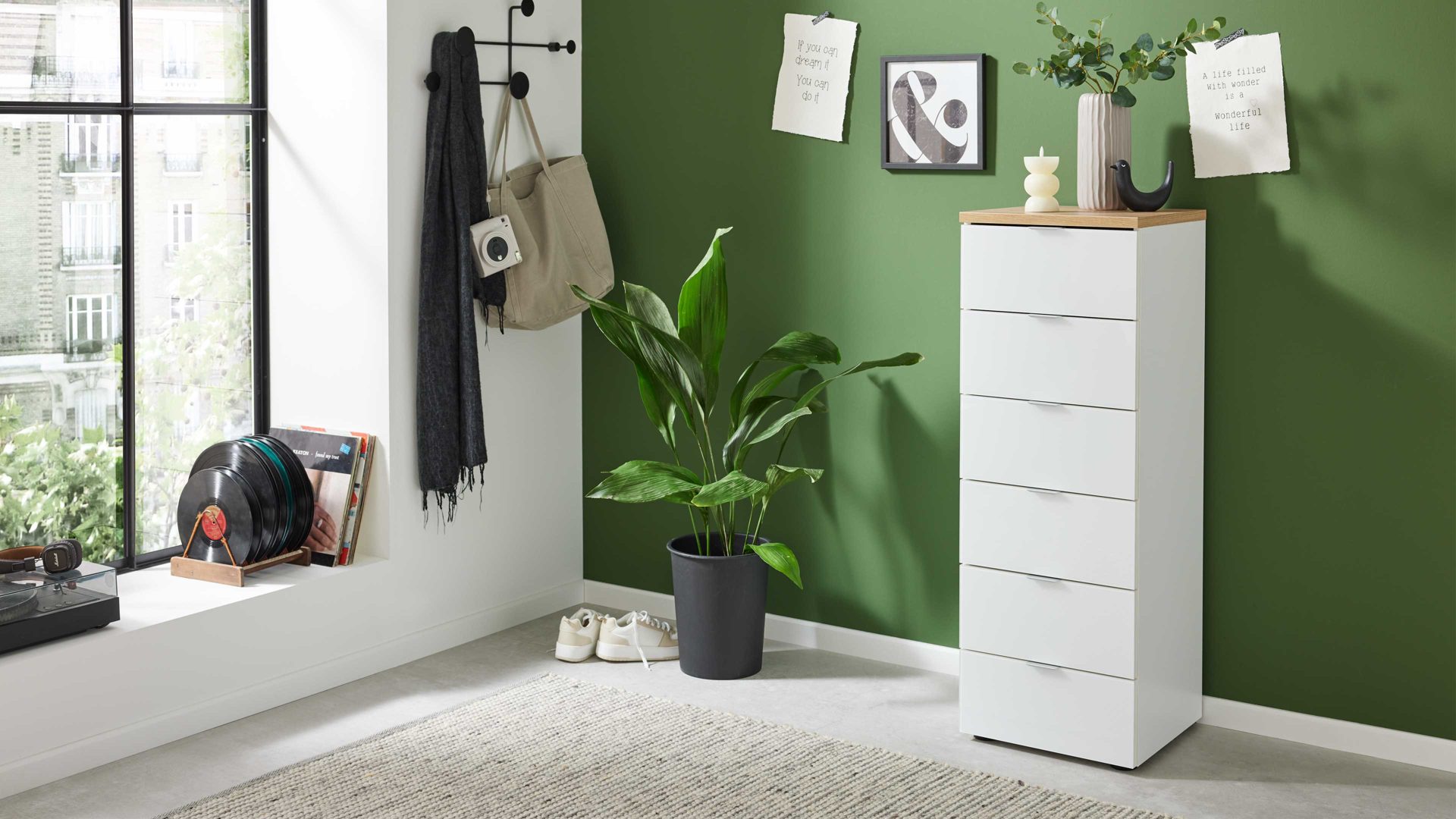 Schubladenkommode aus der Interliving Kleiderschrank Serie 1208 – moderne Eleganz in Alpinweiß und Artisan-Eiche