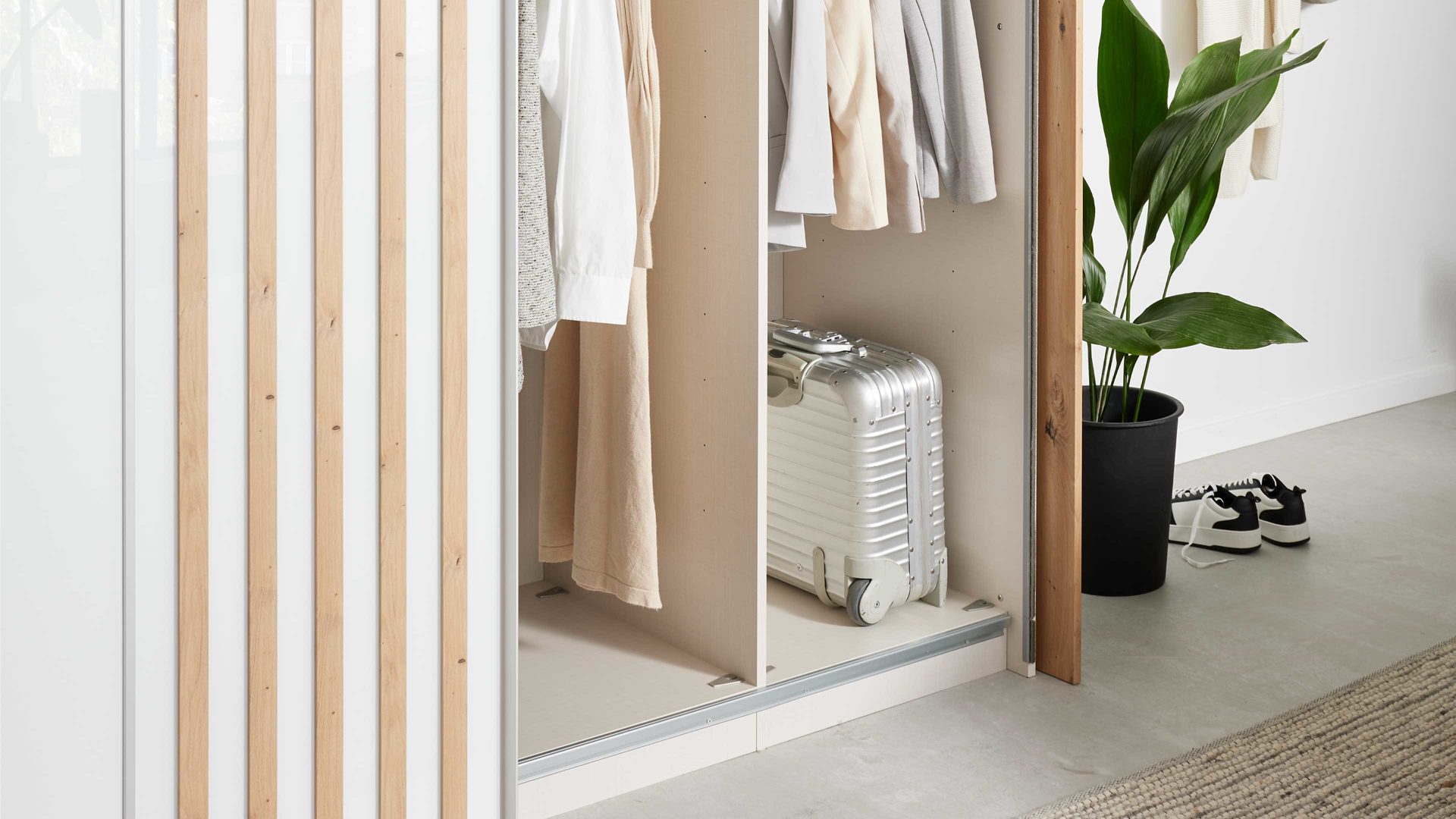 Schwebetürenschrank Interliving Kleiderschrank Serie 1208 – moderne Eleganz in Alpinweiß
