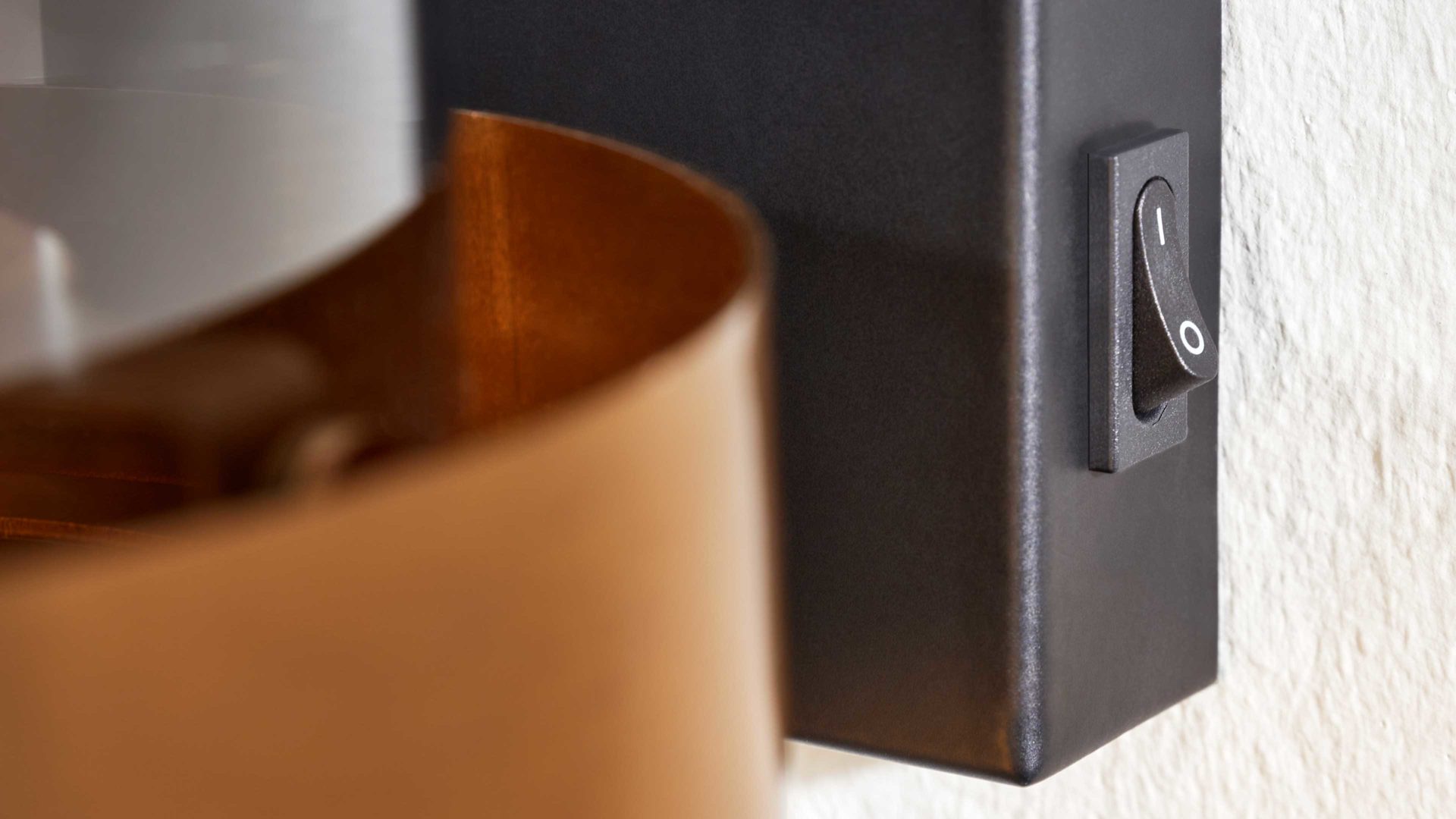 Die Leuchte strahlt ihr Licht gezielt nach unten ab und schafft so eine stimmungsvolle Atmosphäre. Sie ist mit einer E27-Fassung ausgestattet und für Leuchtmittel bis maximal 60 Watt geeignet. Das Leuchtmittel ist nicht im Lieferumfang enthalten. Über den integrierten Kippschalter am Sockel lässt sich die Wandlampe bequem ein- und ausschalten.