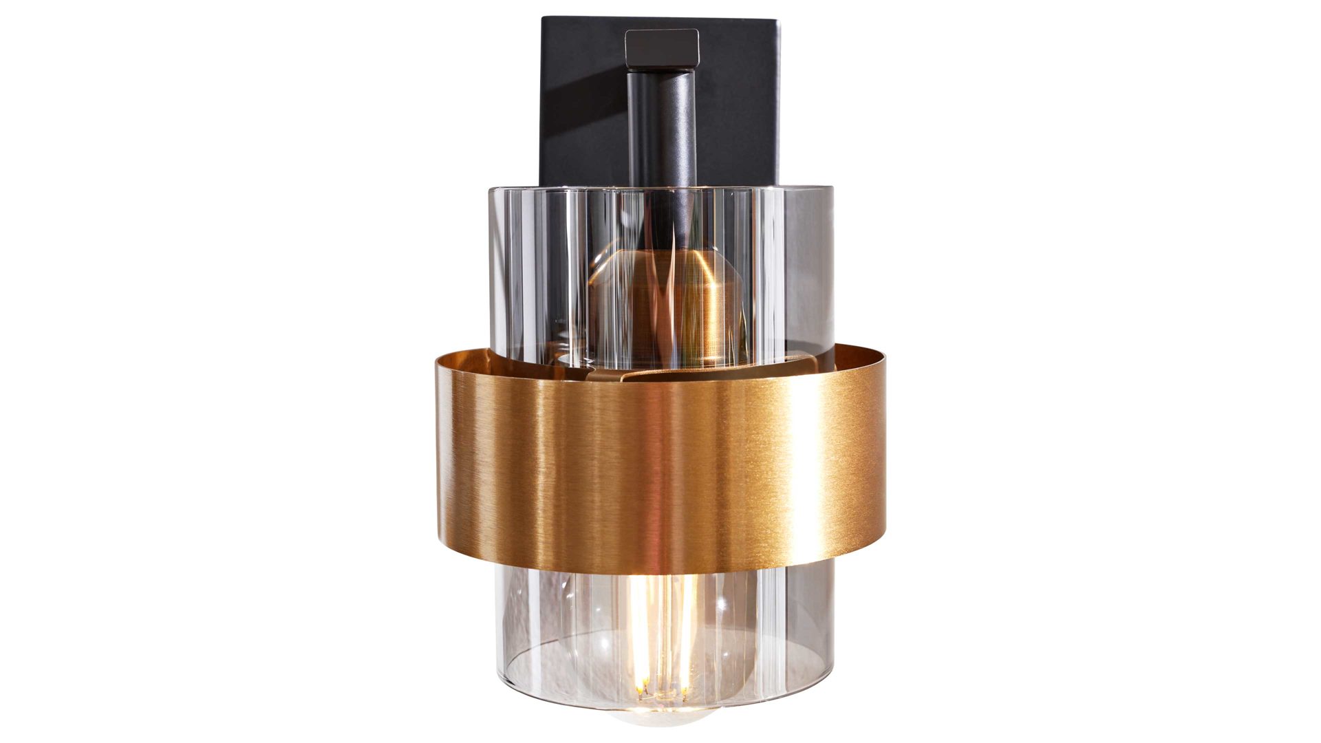 Die Wandleuchte 155600WIL aus der Interliving Leuchten Serie 9333 begeistert mit einem modernen, extravaganten Design und hochwertigen Materialien. Die Kombination aus mattschwarzem Metall, rauchfarbenem Glas und einem gebürsteten messingfarbenen Metallring verleiht der Leuchte eine stilvolle Optik mit charakterstarkem Akzent. Ob im Wohn-, Schlaf- oder Arbeitszimmer oder im Flur – diese Wandlampe zieht die Blicke auf sich und sorgt gleichzeitig für angenehmes Licht.