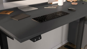 graphitfarbene Tischplatte und mattschwarzes T-Fuss-Metallgestell
