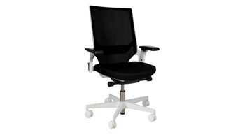 Der stilvolle Topstar Drehstuhl Autosyncron-1 kombiniert klassisch schwarzen Stoff- und Meshbezug mit einem weißen Kunststoff-Drehkreuz. Ebenfalls weiße Metall-Armlehnen mit einer wiederum schwarzen Polsterauflage runden das schwarz-weiße Design dieses modernen Bürostuhls harmonisch ab.