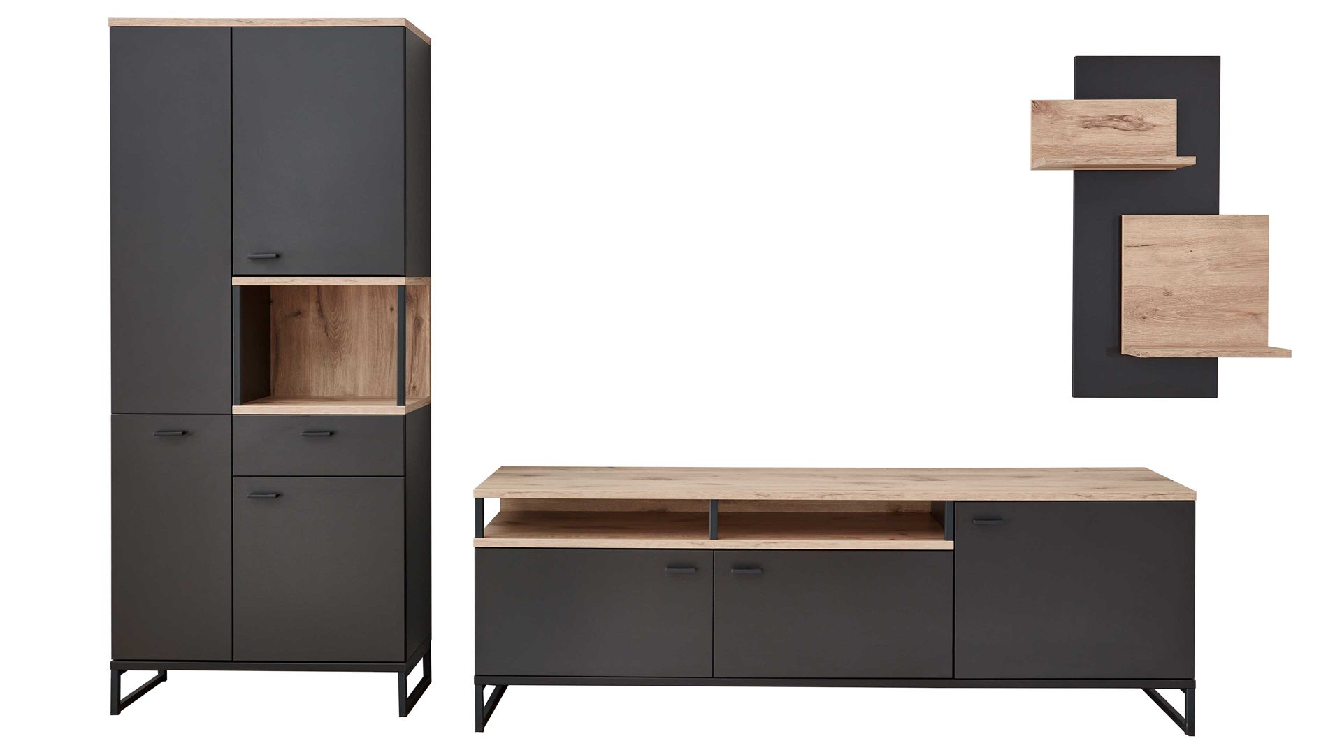 Wildeiche & Anthrazit - dreiteilig, Breite ca. 319 cm