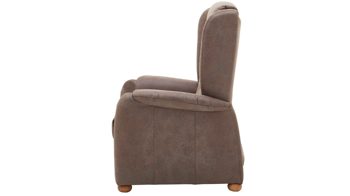 Dieser Ohrensessel kombiniert geölte Eichenholz-Kugelfüße mit einem klassisch-braunen Stoffbezug. Durch die harmonisch aufeinander abgestimmten Materialien und Farben strahlt der TV-Sessel Eleganz im Landhaus-Stil aus. Die nötige Stabilität gewährleistet das Holzgrundgestell. Es macht den Sessel bis 110 kg belastbar. Die Maße des erstklassig verarbeiteten Komfortsessels belaufen sich auf ca. 85 x 115 x 84 cm (BxHxT), bei einer Sitzhöhe von ca. 46 cm und einer Sitztiefe von ca. 53 cm.