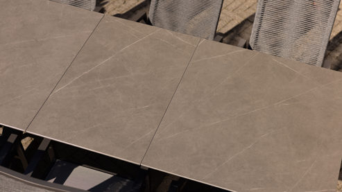 Die Oberfläche aus hochwertigem Sintered Stone wurde speziell für den Outdoor-Bereich entwickelt und überzeugt durch extreme Widerstandsfähigkeit. Kratz- und stoßfest, UV- und farbbeständig sowie wetterfest – ideal für den ganzjährigen Einsatz im Freien. Ein Funktionstisch, der nicht nur durch Design, sondern auch durch Langlebigkeit begeistert.