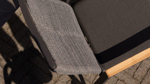 Für zusätzlichen Komfort sorgt das mitgelieferte Sitzkissen mit Bezug aus Sunbrella® Outdoorgewebe im Farbton Sooty. Dank spezieller Imprägnierung ist es fettabweisend, schimmelresistent, atmungsaktiv, farbecht und wasserabweisend – perfekt für jede Wetterlage. So wird der Outdoor-Polsterstuhl zum bequemen Begleiter deiner Gartensaison.