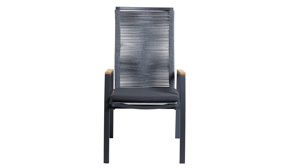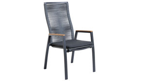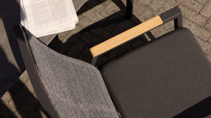 Die ergonomisch geformte Rückenlehne mit robuster Rope-Bespannung bietet stabilen Halt und eine angenehme Haptik. Die Sitzfläche aus hochwertigem TEXTILENE® ist UV-beständig, reißfest, wetterfest, schnelltrocknend und resistent gegen Mikroorganismen – ideal für den ganzjährigen Einsatz im Freien. Ein Outdoor-Armlehnstuhl, der durch Langlebigkeit und Pflegeleichtigkeit überzeugt.