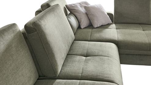 Des Weiteren können Sie einige Details an Ihre Wünsche und Bedürfnisse anpassen. Die Polstermöbel sind preisgleich auch mit der etwas festeren Federkernpolsterung sowie mit glänzenden Metallfüßen erhältlich. Darüber hinaus profitieren Sie von der umfangreichen Bezugauswahl. Es sind verschiedene Zusammenstellungen planbar, die sich mit vielen Funktionen ergänzen lassen.