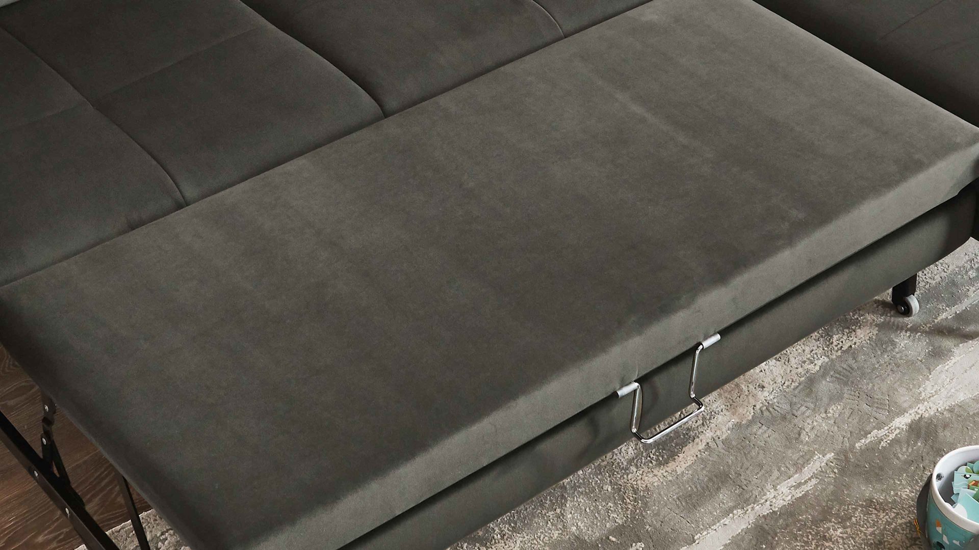 Die stoffbezogene Liegefläche ist ein edler Mehrpreis für die praktische Bettfunktion der Möbel aus der Modulmaster-Serie MM-ZE1156. Durch dieses Extra präsentiert sich die Liegefläche im gleichen Stoff wie die Sitzfläche des jeweiligen Sofas. Der olivgrüne Stoffbezug in Samtoptik strahlt moderne Eleganz aus.