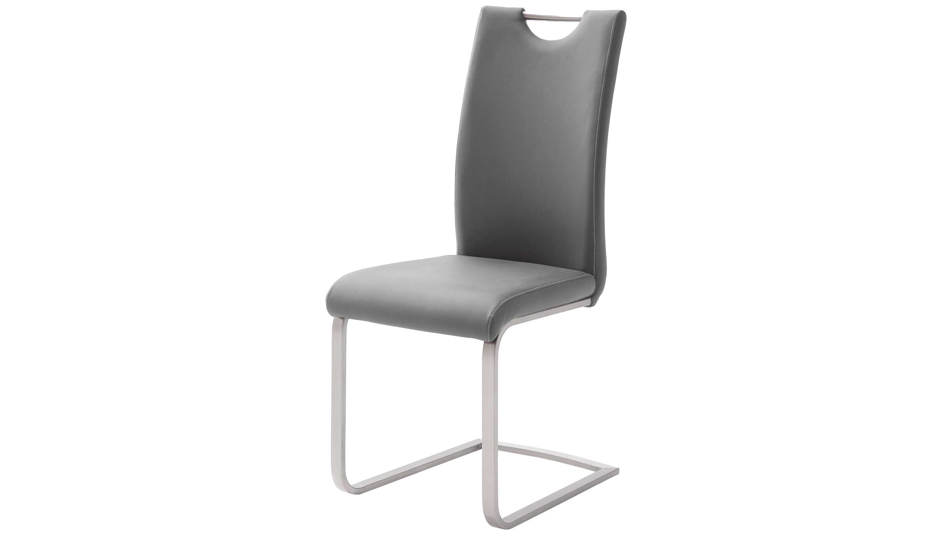 Mit dem grauen Kunstlederbezug strahlt er Wärme und Eleganz aus - Eigenschaften, die jeden Raum und Stil aufwerten. Das Edelstahl-Rundrohrgestell sorgt durch die klassische Farbgebung für eine harmonische Abrundung und gewährleistet dank des robusten Materials die beim Sitzen und lockeren Schwingen erforderliche Stabilität.
