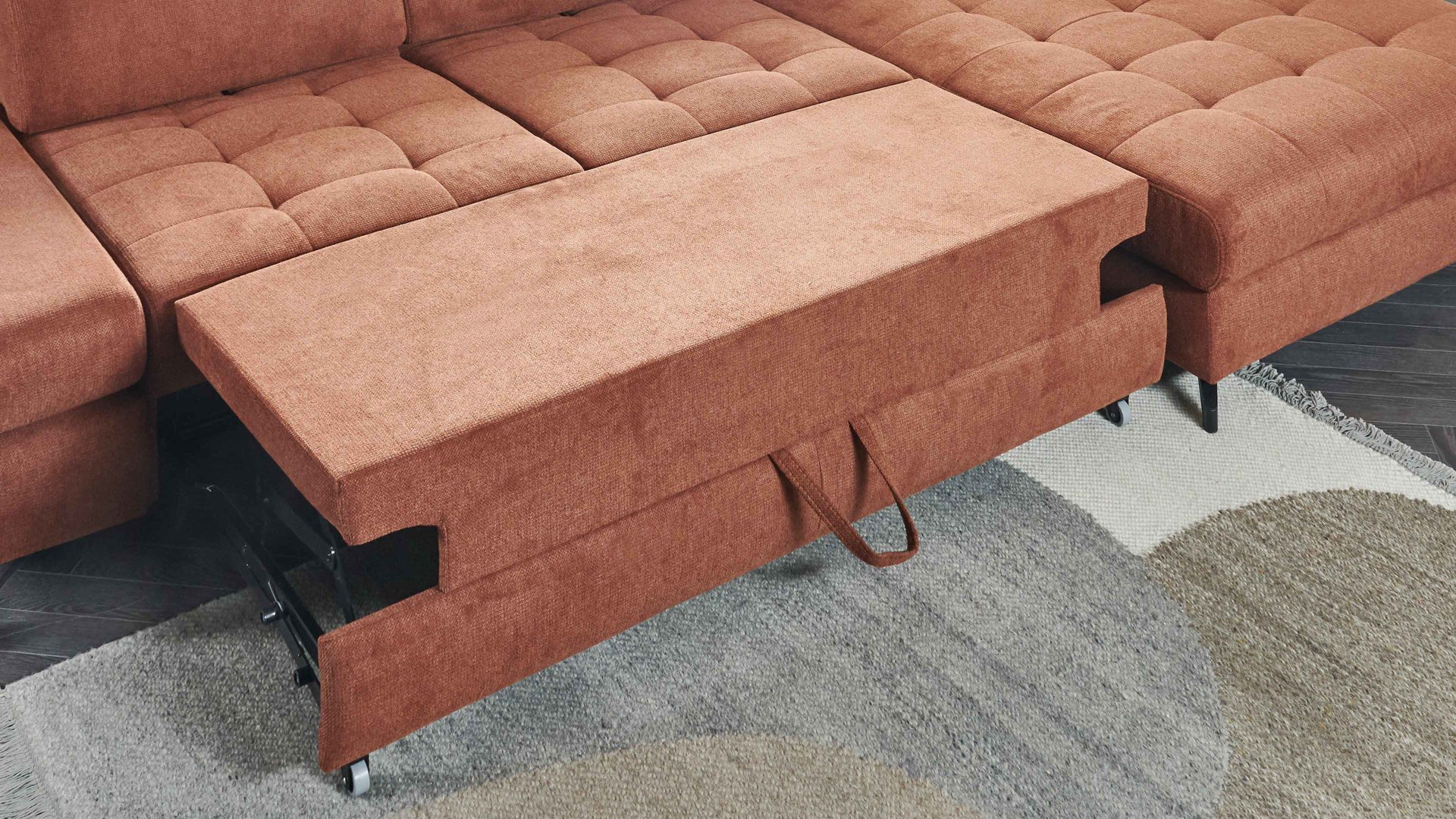 Mit der praktischen Möglichkeit, die Sitzfläche im Handumdrehen hochzuklappen und den Raum darunter zur Aufbewahrung verschiedener Gegenstände (Kuscheldecken, Zierkissenbezüge et cetera) zu nutzen, verwandelt sich der jeweilige Longchair in ein multifunktionales Möbel - flexibel einsetzbar und gemütlich. Der Mehrpreis wird pro Element berechnet.