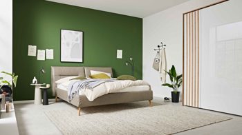 Ein besonderes Highlight ist das bodenfreie Polsterkopfteil mit eleganter Kappnaht. Es sorgt für eine leichte, moderne Optik und bietet dir gleichzeitig angenehmen Komfort beim Anlehnen – perfekt für entspannte Abende beim Lesen oder Fernsehen.