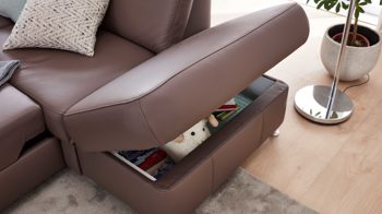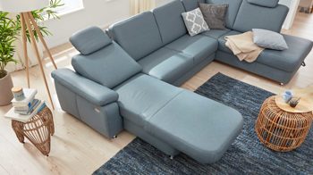 • Die Abbildung zeigt ein Wohnbeispiel, welches auch Dekoration sowie separat erhältliches Zubehör enthält. Im Lieferumfang enthalten ist eine motorische Funktion für Canapés.