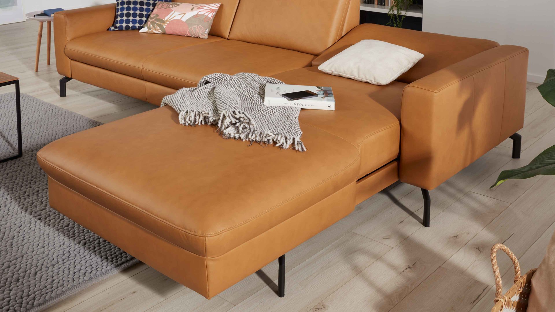 kurkumafarbenes Leder Vivre & Rollenfüße – Stellfläche ca. 195 x 309 cm