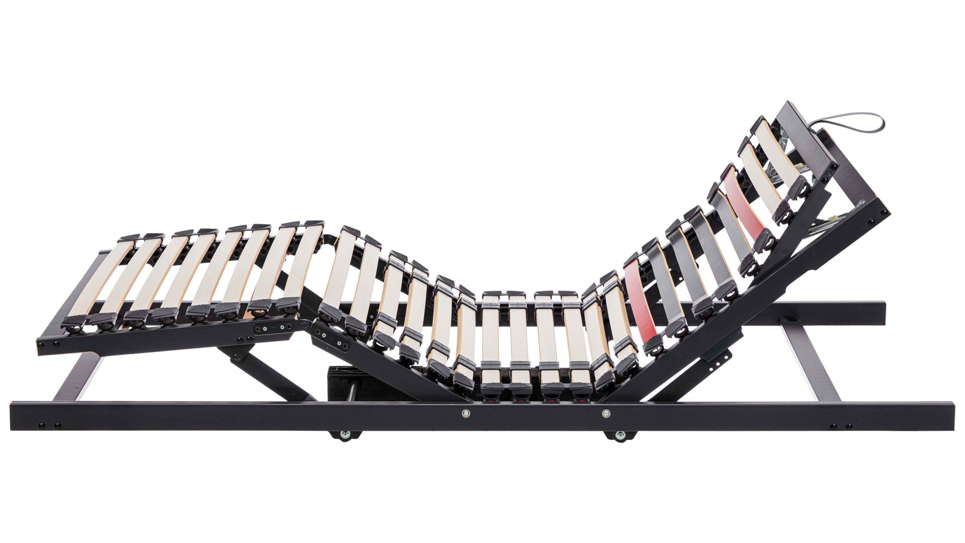 Die elastischen Federleisten sind in langlebigen Hightech-Kappen gelagert, die dauerhaft flexibel bleiben und geräuscharm arbeiten. Verstärkte Querleisten mit Winkelsicherung sowie hochfeste Gelenkschrauben aus Stahl erhöhen die Stabilität zusätzlich und sorgen für eine dauerhaft sichere Konstruktion.