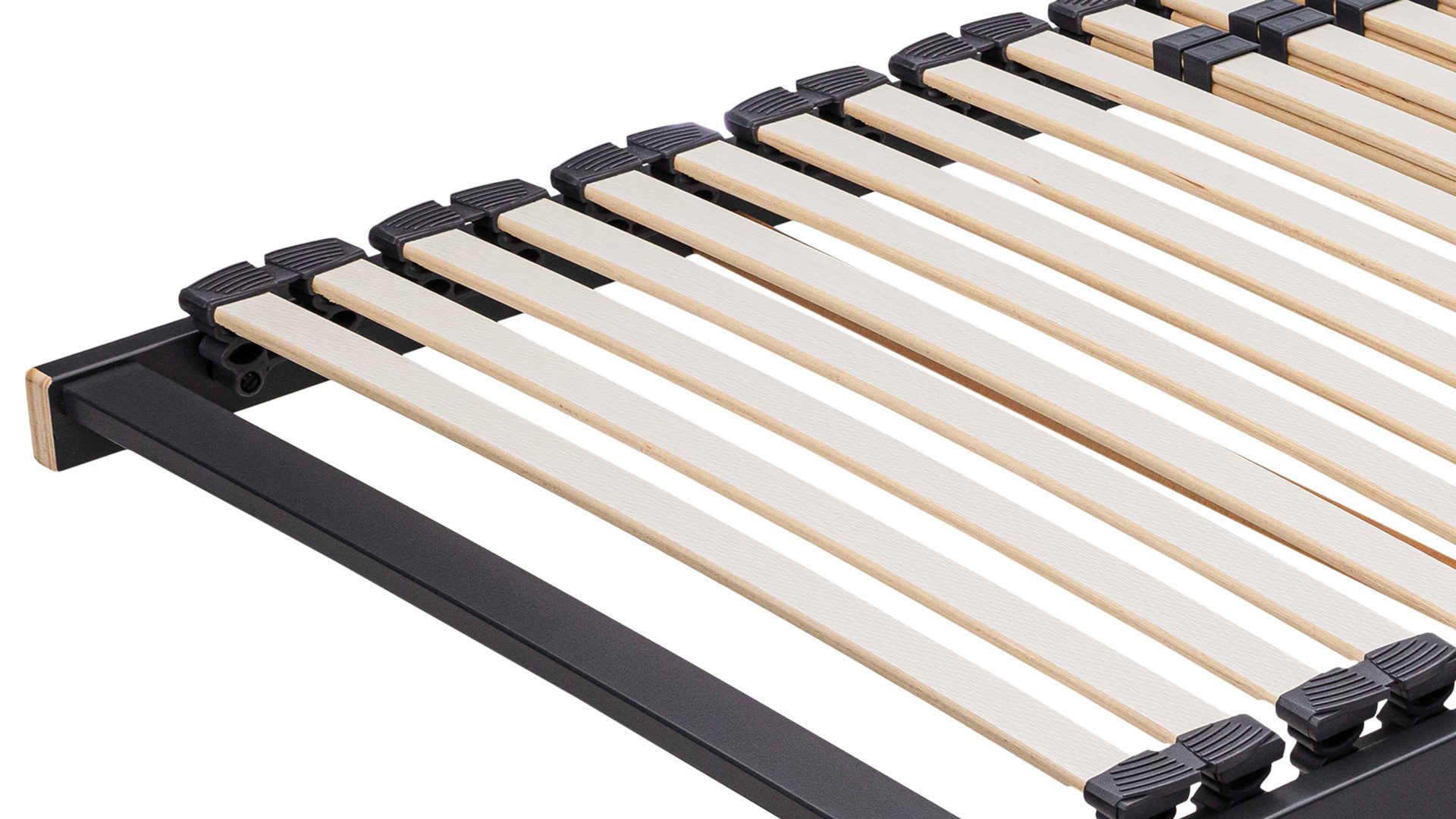Die elastischen Federleisten sind in überstehenden, äußerst robusten Hightech-Kappen gelagert. Ergänzt wird die stabile Konstruktion durch verstärkte Querleisten mit Winkelsicherung und hochfeste Gelenkschrauben. Diese Kombination sorgt für außergewöhnliche Stabilität – auch bei hoher und dauerhafter Belastung.