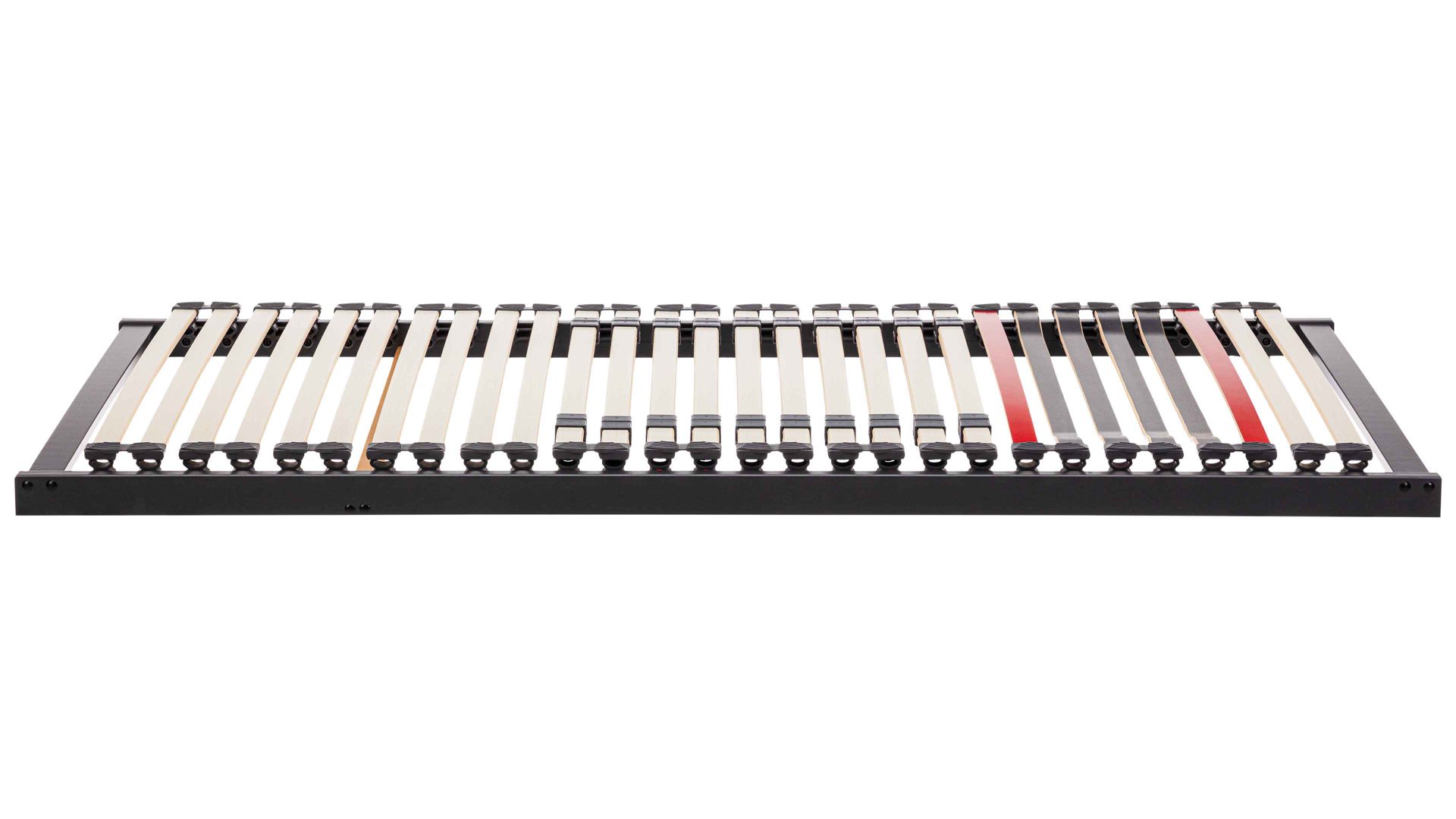 Die elastischen Federleisten sind in langlebigen Hightech-Kappen gelagert, die dauerhaft flexibel bleiben und geräuscharm arbeiten. Verstärkte Querleisten mit Winkelsicherung sowie hochfeste Gelenkschrauben aus Stahl erhöhen die Stabilität zusätzlich und sorgen für eine dauerhaft sichere Konstruktion.
