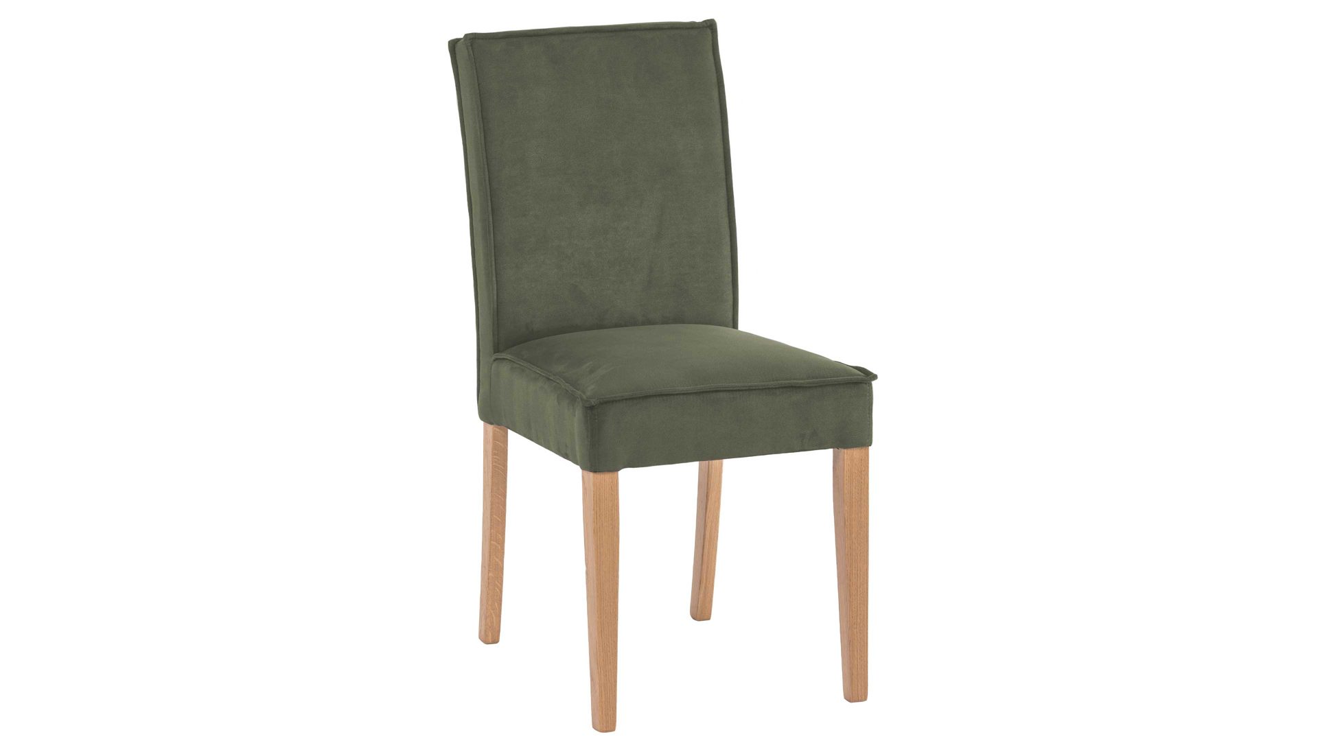 Der Polsterstuhl Lagos begeistert mit den hochwertigen Materialien, der erstklassigen Verarbeitungsqualität, dem stilvollen Design und dem hohen Komfort. Als stabile Basis fungiert ein lackiertes Eichenholzgestell, das natürlichen, warmen Charme verströmt und hervorragend mit dem dunkelgrünen Stoffbezug harmoniert. In Kombination sorgen die Materialien und Farben für eine moderne und gemütliche Ausstrahlung. Einen gelungenen Akzent setzt die umlaufende Ledernaht.