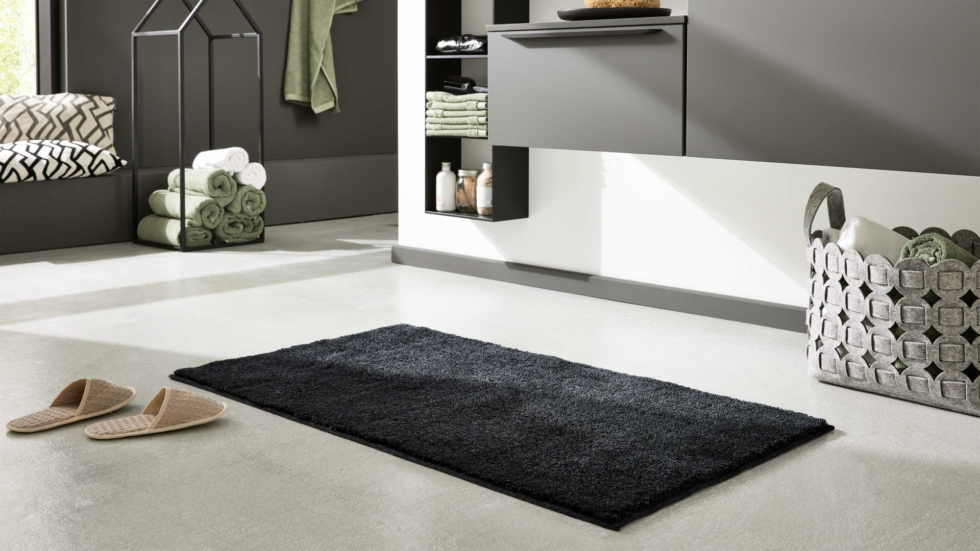 Hergestellt aus anthrazitfarbener Kunstfaser, strahlt der ca. 50 x 60 cm (BxL) große Duschvorleger moderne Eleganz mit einer noblen Note aus, die dem Badezimmer das gewisse Etwas verleiht.