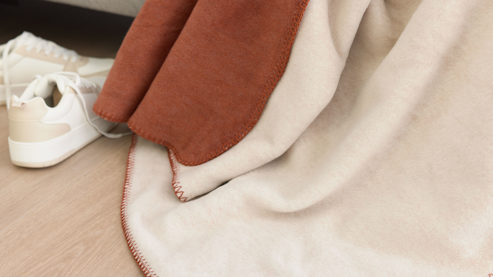 Das rotfuchs- und federfarbene Mischgewebe verleiht der Decke eine natürliche, edle Ausstrahlung, die sich harmonisch in verschiedenste Wohnstile einfügt. Besonders charmant wirkt die dekorative Häkelsaum-Einfassung, die der Decke eine feine handwerkliche Note verleiht.