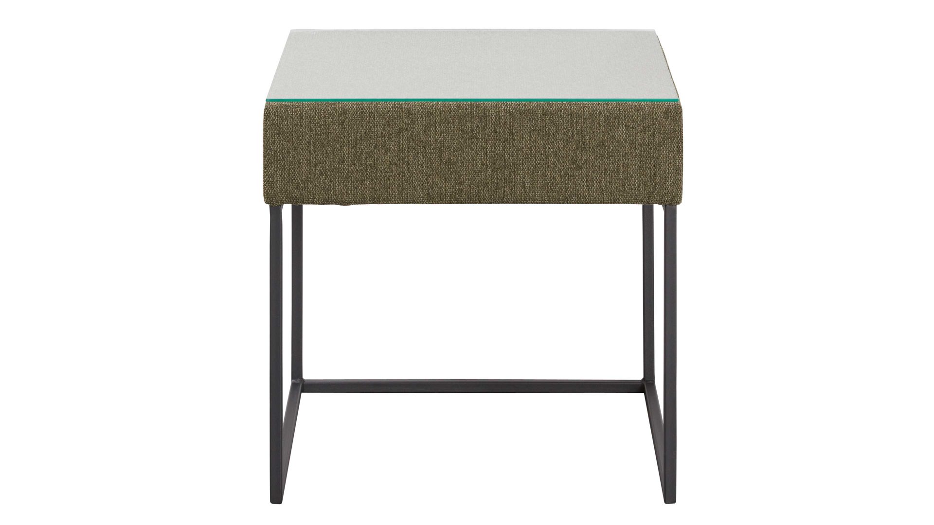 Die Nachtkonsole (Typ Ilyanka) aus der Interliving Bettsystem Serie 1414 vereint moderne Eleganz, funktionale Gestaltung und hochwertige Materialien. Der olivgrüne Stoffbezug bringt warme, natürliche Akzente in Ihr Schlafzimmer, während die mattschwarzen Metallkufen für einen spannenden Kontrast sorgen. Das Ergebnis ist eine Nachtkonsole mit schwebender, leichter Optik, die sich perfekt in moderne Wohnkonzepte einfügt.