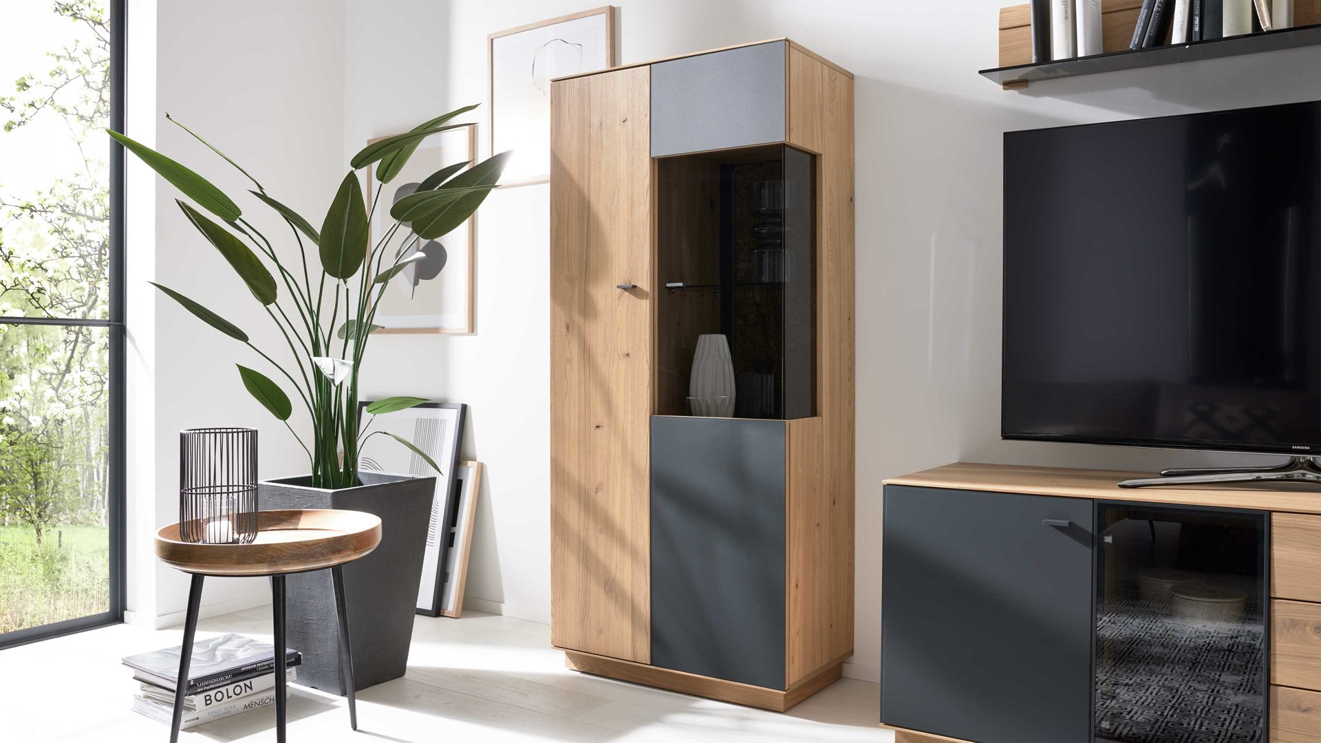 Natürlich, modern und detailverliebt – die Vitrine aus der Interliving Wohnzimmer Serie 2025