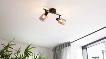 Die Deckenleuchte ist mit fest integrierten LED-Leuchtmitteln ausgestattet, die mit 45 Watt Leistung und 1600 Lumen für eine angenehme Helligkeit sorgen. Dank einer Farbtemperatur von 3000 Kelvin erzeugt das Licht eine warmweiße, wohnliche Atmosphäre – perfekt, um deine Räume gemütlich auszuleuchten. Die Leuchte ist der Energieeffizienzklasse F (Spektrum A bis G) zugeordnet.