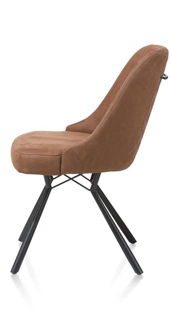Stuhl Eefje 29962COG von Habufa. Dieser schicke Stuhl, stammt aus der modernen Serie Eefje, die von den Möbelspezialisten bei Habufa hergestellt wird. Dank seines modernen Designs eignet er sich hervorragend als Wohn- und Esszimmerstuhl oder auch als Büro- oder Wartezimmerstuhl. Für den Bezug wurde sanfter Kibo-Stoff verwendet, der in diversen Farben erhältlich ist und ein langes und komfortables Sitzen ermöglicht. Wählen Sie aus den Farben anthrazit, taupe, cognac oder hellgrau und passen Sie den Stuhl Eefje so an Ihre persönlichen Vorstellungen an. Das Gestell besteht aus modern wirkendem, schwarz lackiertem Metall.