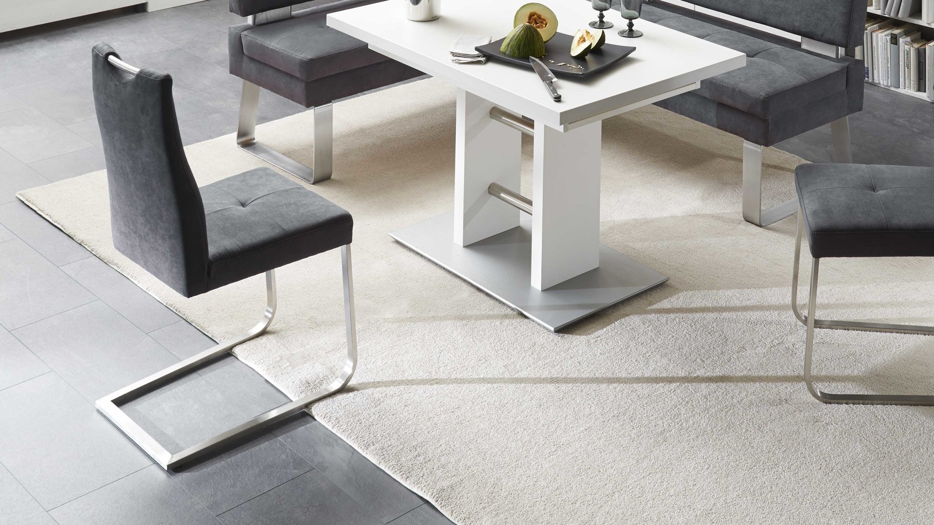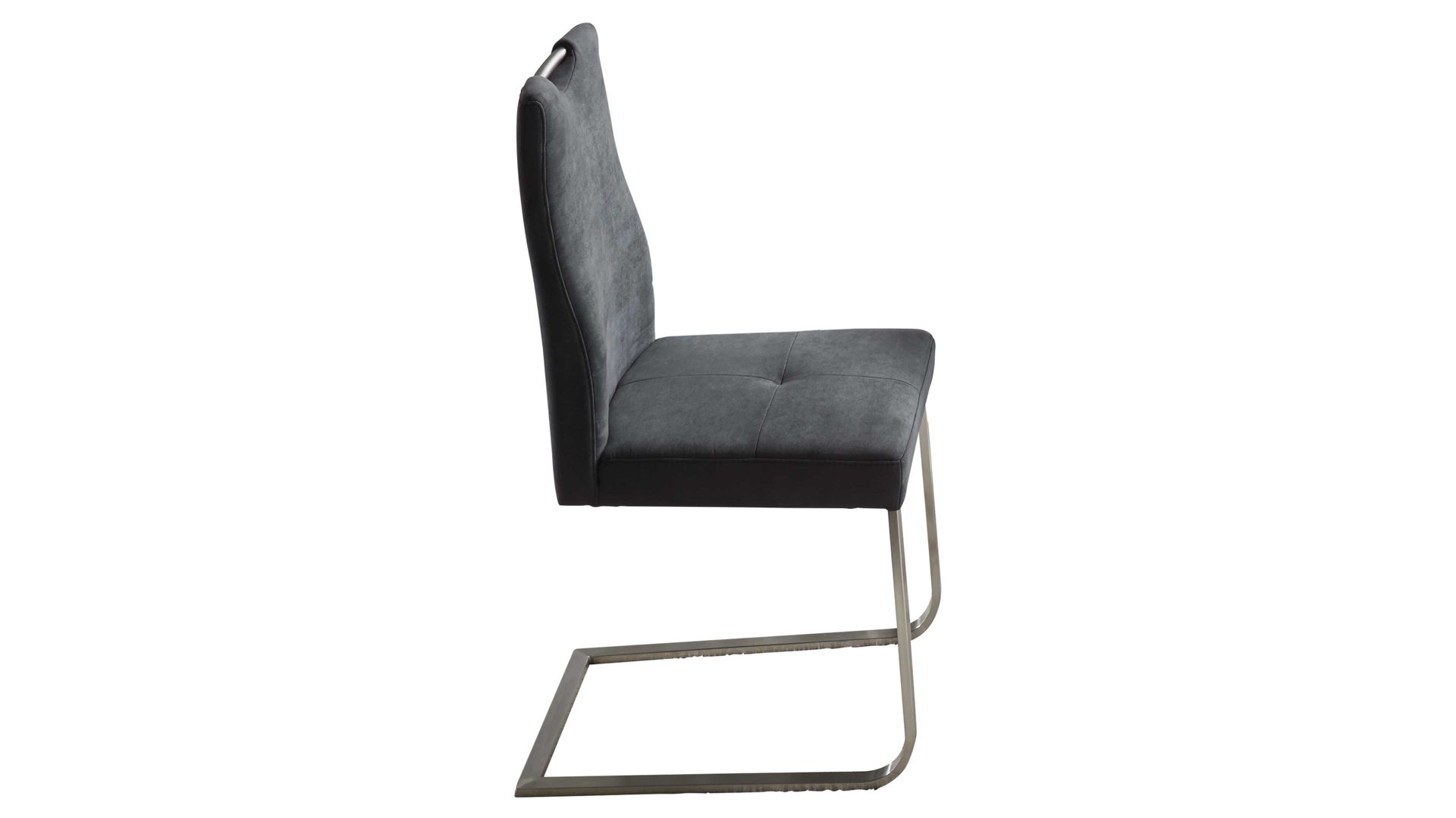 Auch optisch macht der Freischwinger einiges her. Als stabilisierende Basis fungiert ein klassisches Edelstahlgestell. Es harmoniert bestens mit dem soften Mikrofaserbezug im modernen Farbton Anthrazit. Stilsicher abgerundet wird der Combinessa Polsterstuhl Genesis durch die akzentuierende Steppung der Sitzfläche.