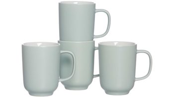 Es handelt sich um ein Set, das sich aus vier gleich großen Bechern zusammensetzt. Jeder Kaffeebecher ist ca. 10 cm hoch und hat einen Durchmesser von ca. 8 cm, sodass er ca. 320 ml Ihres liebsten Heißgetränks fasst. Alternativ stehen Ihnen die praktischerweise spülmaschinenfesten Kaffeebecher auch in einer anderen Farbnuance zur Verfügung. Des Weiteren sind ergänzende Artikel der Serie erhältlich. Diese erscheinen entweder im selben oder in einem ähnlichen Design wie das schöne Kaffeegeschirr.