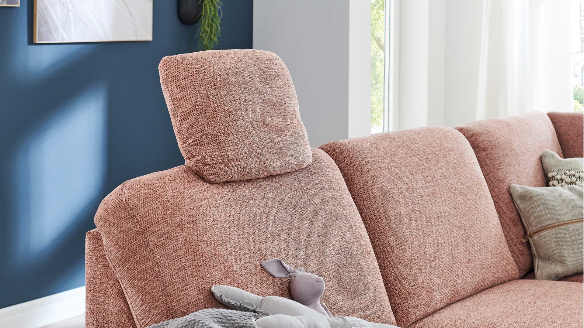 • Die Abbildung zeigt ein Wohnbeispiel, welches auch Dekoration sowie separat erhältliches Zubehör enthält. Im Lieferumfang enthalten ist die drellbezogene Schlaffunktion in der Type 2,5EL.