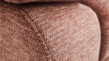 Es ist mit trendig sienafarbenem Webstoff bezogen, der edle Gemütlichkeit ausstrahlt und mit verschiedenen Einrichtungen bestens harmoniert. Runde schwarze Metallfüße vervollständigen das attraktive Design und verleihen dem Sofa überdies die nötige Standfestigkeit.