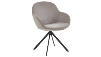 Der Armlehnen-Vierfußstuhl Ottawa kommt in einem ausdrucksstarken Design: Seine Sitzschale inklusive der gepolsterten Armlehnen ist komplett in einer edlen Vintage-Veloursoptik gehalten. Entlang aller Kanten ist der Stuhl mit Keder verstärkt. Der Velours in einem schickem Grau trifft auf vier mattschwarz lackierte Metallfüße. Einen spannenden Kontrast bildet die softe Oberfläche zu der geradlinigen Formensprache.