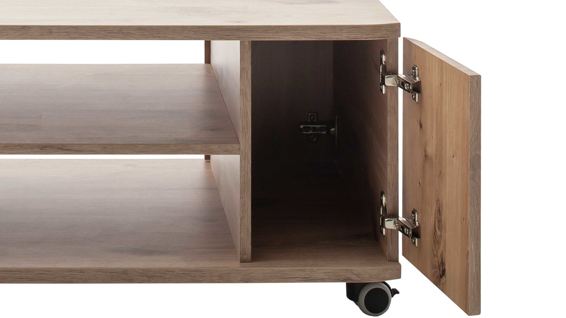 Der Couchtisch aus dem hochwertigen Wohnprogramm Prato bringt modern interpretierte Natürlichkeit in Ihr Wohnzimmer. Durch die authentische Viking-Oak-Nachbildung strahlt er Wärme und Gemütlichkeit aus - genau das, was man sich im wichtigsten Raum des Zuhauses wünscht.