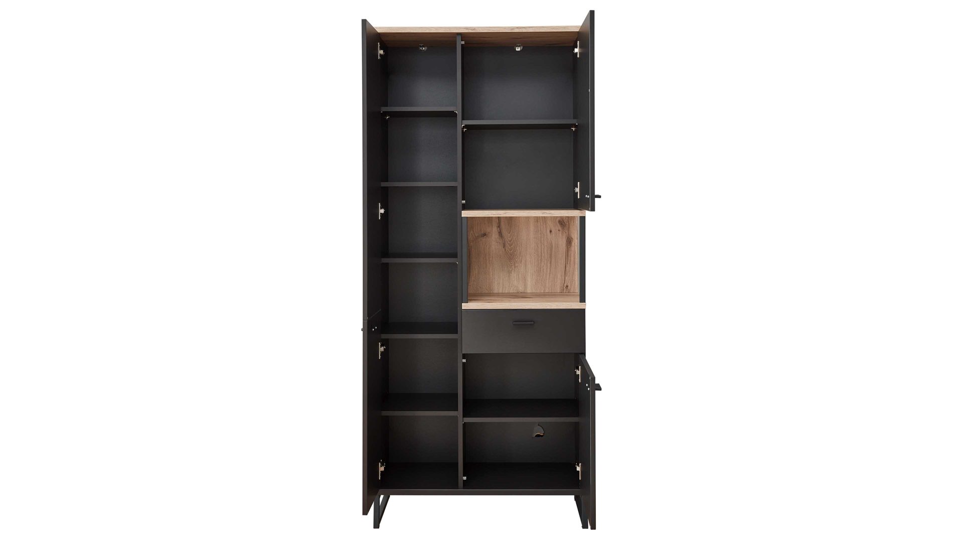 dreitürige Vitrine mit einer Schulade und einem offenen Fach