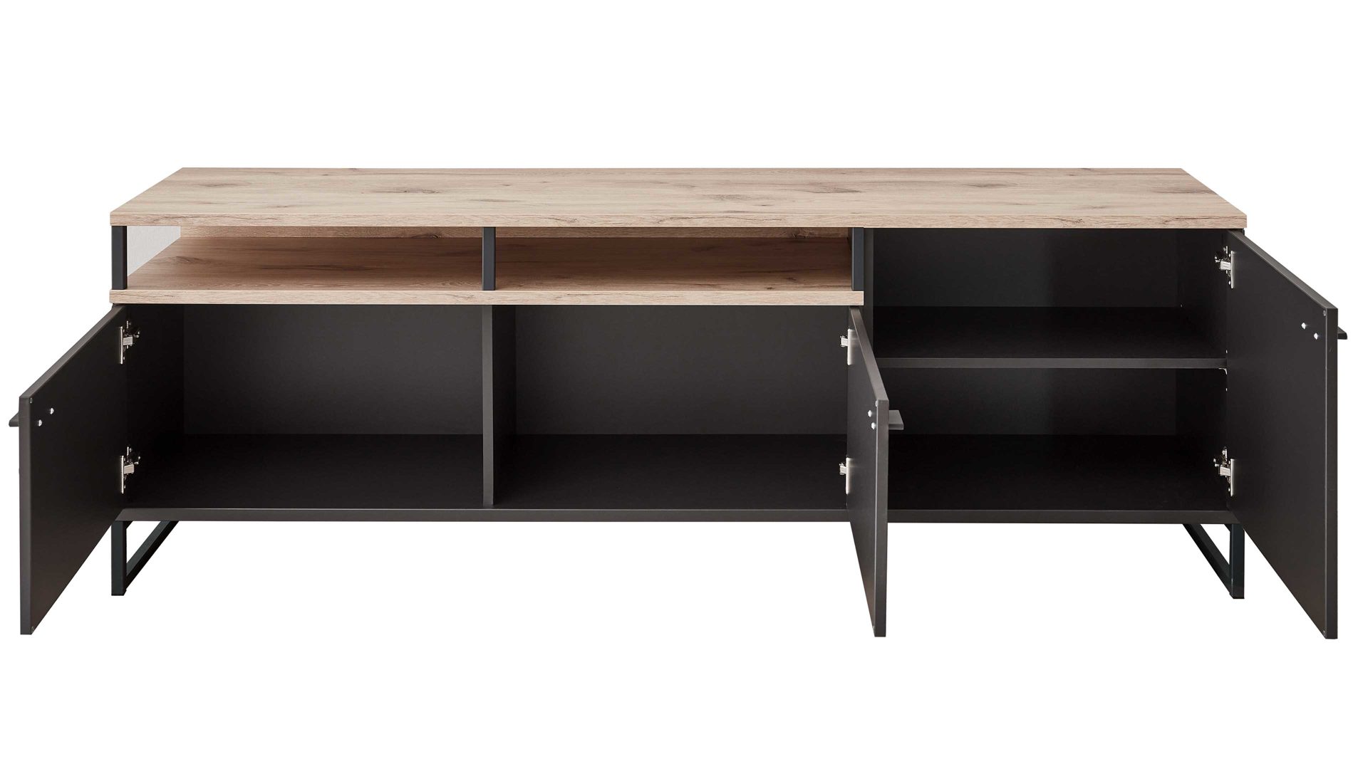 dreitüriges Unterteil mit zwei offenen Fächern