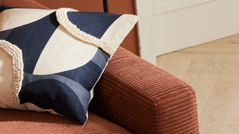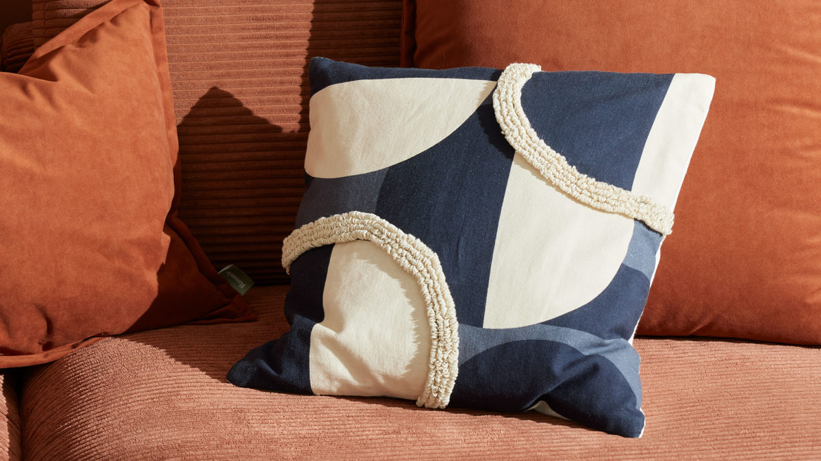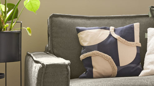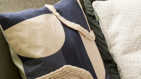 Kissenbezug mit getufteter, erhabender Vorderseite, unifarbener Rückseite und verdecktem Reißverschluss