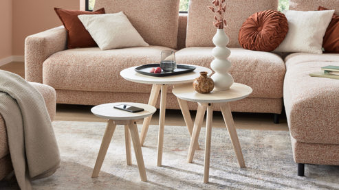 | Maße Einzelartikel: | Durchmesser großer Tisch ca. 75 cm, Höhe ca. 45 cm Durchmesser kleiner Tisch ca. 65 cm, Höhe ca. 35 cm | |