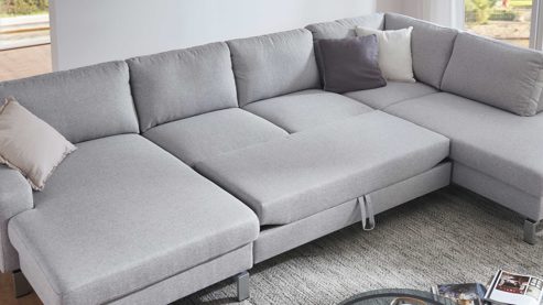die Liegefläche wird ohne Aufpreis im gleichen Stoff wie das Sofa bezogen