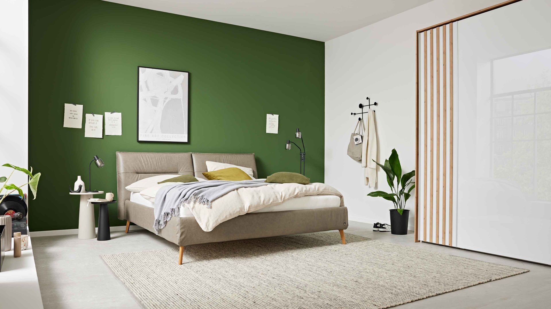 • Die Abbildung zeigt ein Wohnbeispiel, welches auch Dekoration sowie separat erhältliches Zubehör enthält. Im Lieferumfang enthalten ist ein Polsterbettgestell.