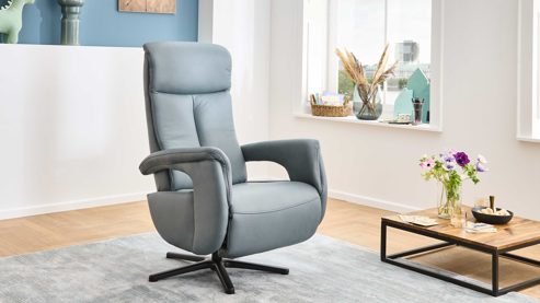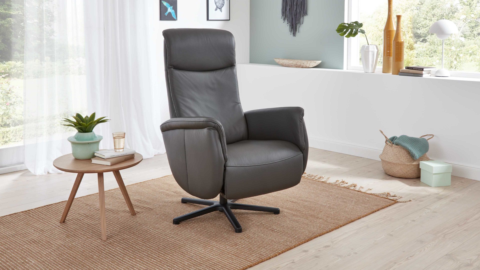• Die Abbildung zeigt ein Wohnbeispiel, welches auch Dekoration sowie separat erhältliches Zubehör enthält. Im Lieferumfang enthalten ist ein Relaxsessel mit einen Aluminium-Sternfuß V1S.